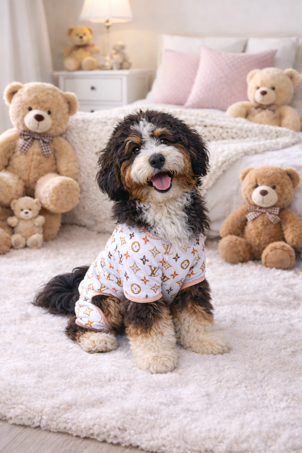 Treat your pup to Parisian elegance with our monogram pajamas—where luxury meets comfort. Crafted from premium soft fabric, these charming PJs feature a sophisticated monogram design that lets your furry friend sleep in style. Perfect for cozy nights in or Instagram-worthy lounging, these pajamas combine timeless French-inspired aesthetics with practical comfort. Your dog will feel like a pampered Parisian pooch in no time.