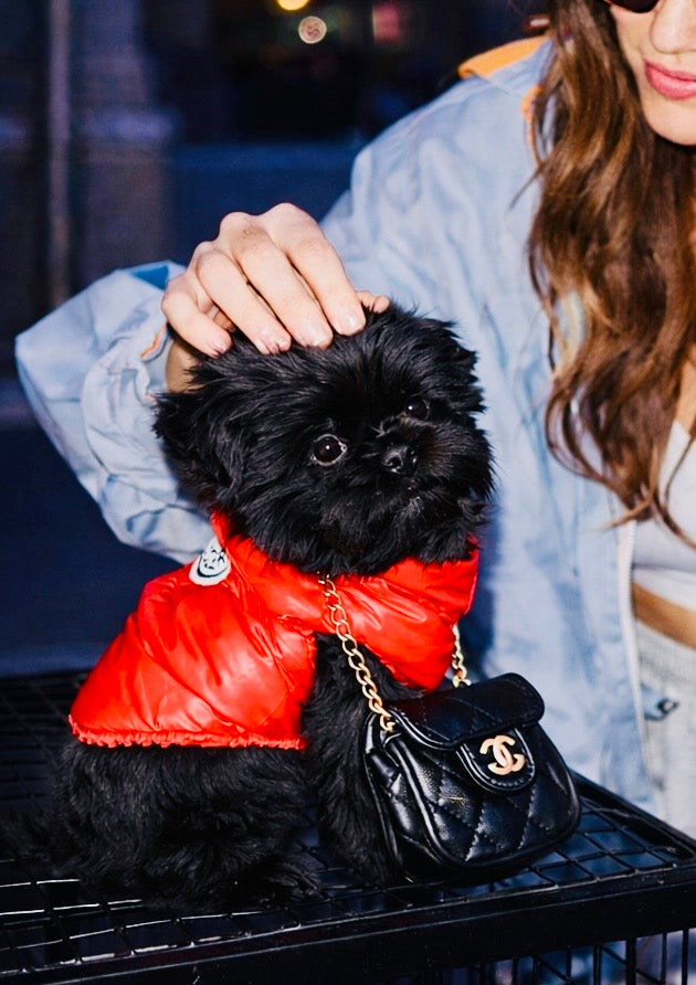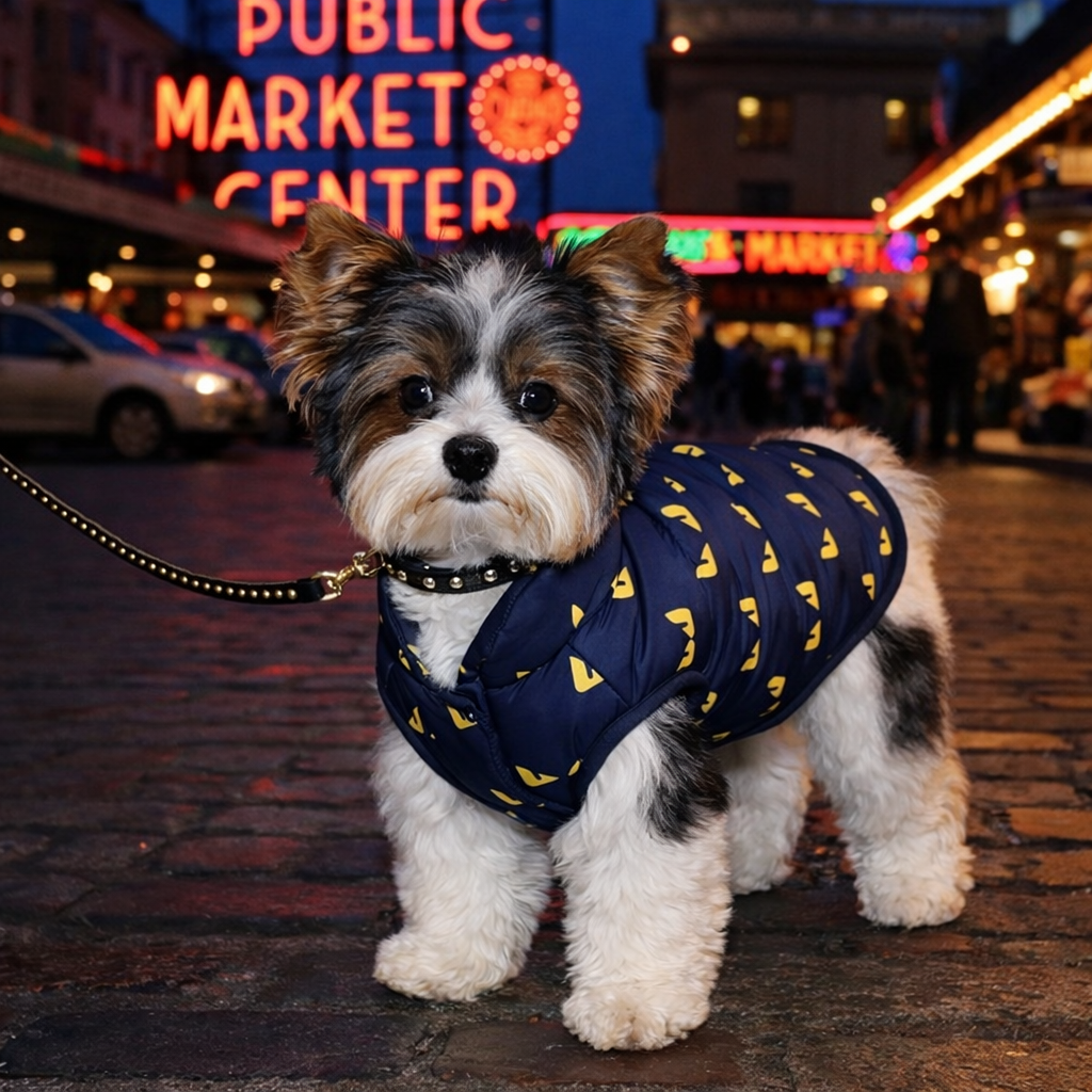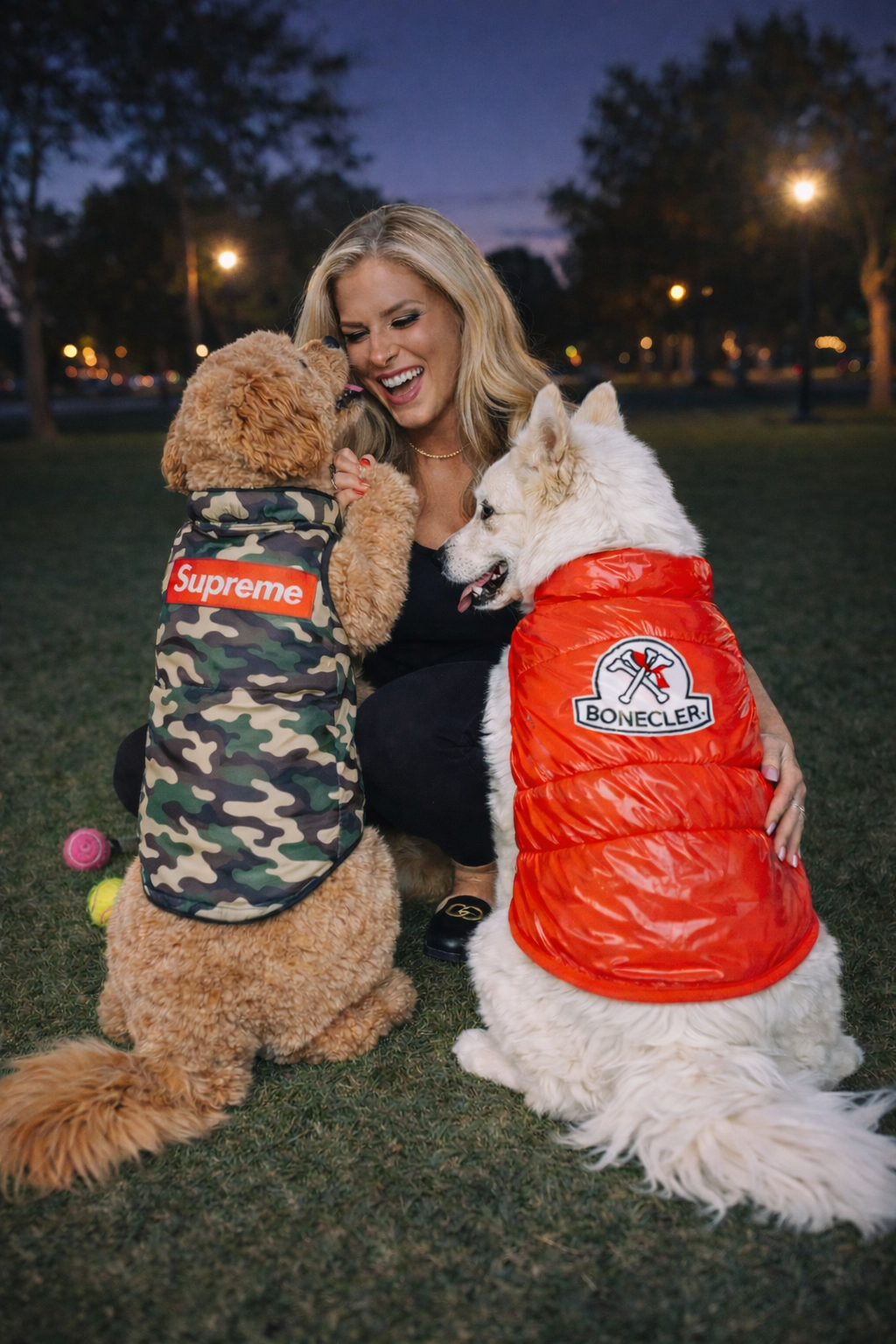 Elevate your pup's winter wardrobe with the Rome Monogram Puffer Vest—where luxury meets tail-wagging style. This premium quilted vest features a sophisticated monogram design and lightweight puffer insulation to keep your furry friend cozy during chilly walks. The tailored fit ensures comfort without compromising movement, while the durable construction withstands playtime adventures. Perfect for the fashion-forward dog parent who refuses to compromise on quality or cuteness.